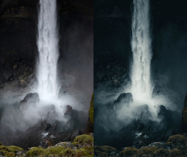 A deep, atmospheric preset crafted to enhance waterfall scenes with rich shadows, cool tones, and soft, misty contrast.